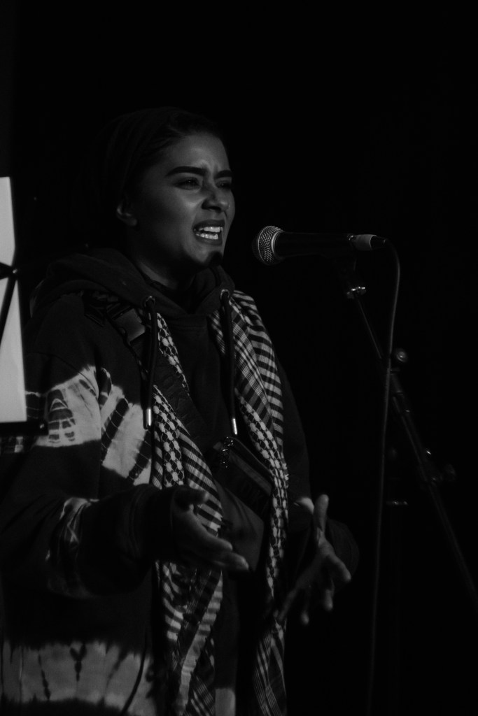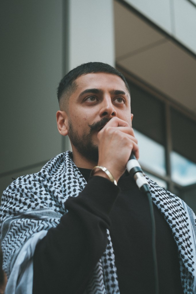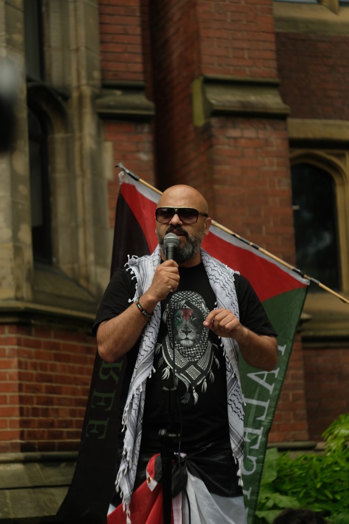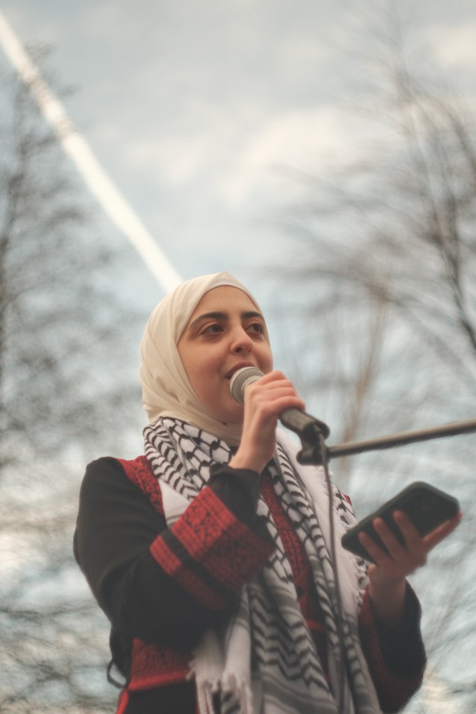 Omar gave a speech about his feelings as a Palestinian living in exile with a desire to return.