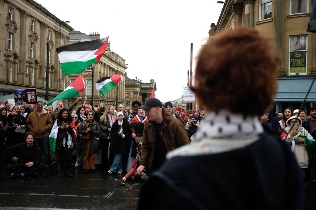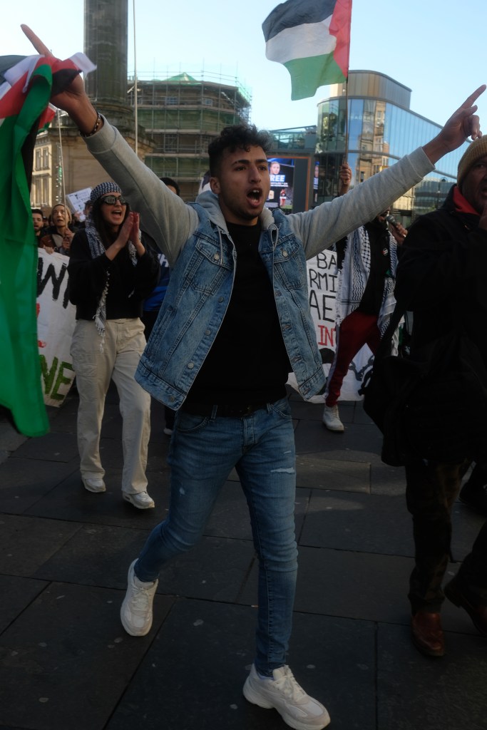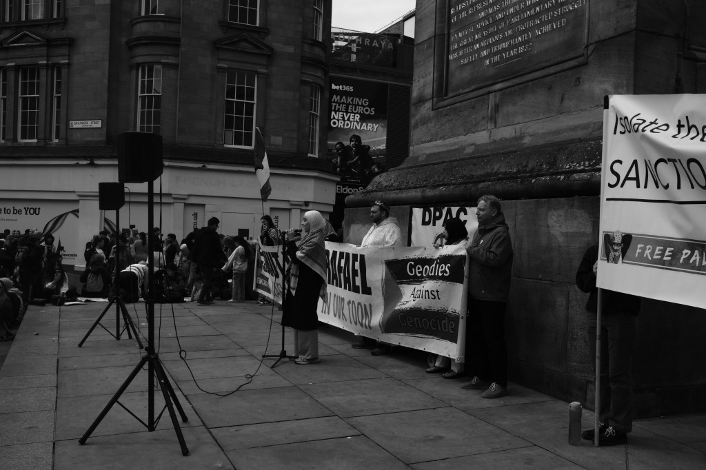 On 09/10/2023, there was an emergency rally at the Monument in Newcastle.