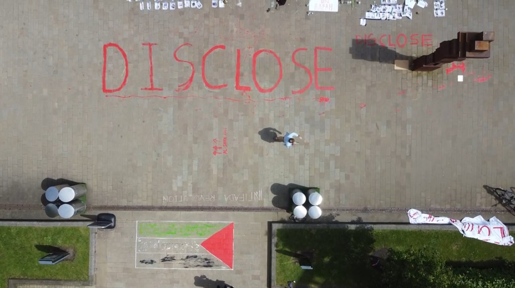 The students wanted to make a statement; they are in solidarity demanding the university divest their investments from Israel and the arms trade.